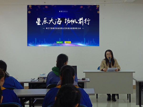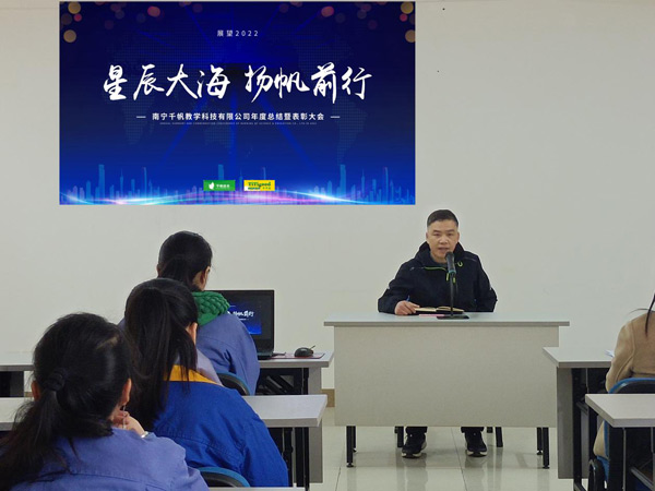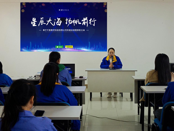 2022年1月28日,南寧千帆教學(xué)科技有限公司2021年度總結(jié)暨表彰大會(huì)隆重舉行,認(rèn)真總結(jié)2021年度取得的各項(xiàng)成績(jī)及 對(duì)2022年的規(guī)劃,同時(shí)表彰2021年度為公司發(fā)展作出突出貢獻(xiàn)的“生產(chǎn)標(biāo)兵”、“優(yōu)秀員工”和“優(yōu)秀管理干部”代表 。會(huì)場(chǎng)內(nèi)充滿了喜慶的氣氛,洋溢著千帆人火熱的激情。
